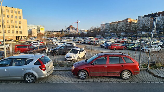 Místo po zbořeném Kulturním domě Inwest mezi Americkou třídou a Denisovým nábřežím v Plzni (8. 2. 2023) )