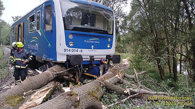 Na trati mezi Bělá nad Radbuzou a Třemešné nad Přimdou po najetí do spadlého stromu vykolejil vlak. (29. července 2025)