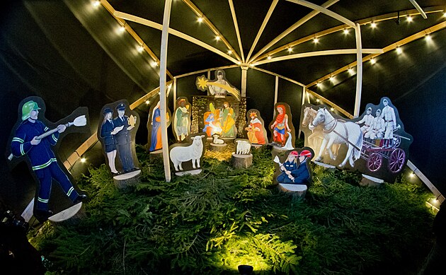 V Dolejším Těšově u Hartmanic mají originální betlém. Je příběhem tamního sboru dobrovolných hasičů. Až do Tří králů bude k vidění v areálu bývalého těšovského zámku. (4. prosince 2024)