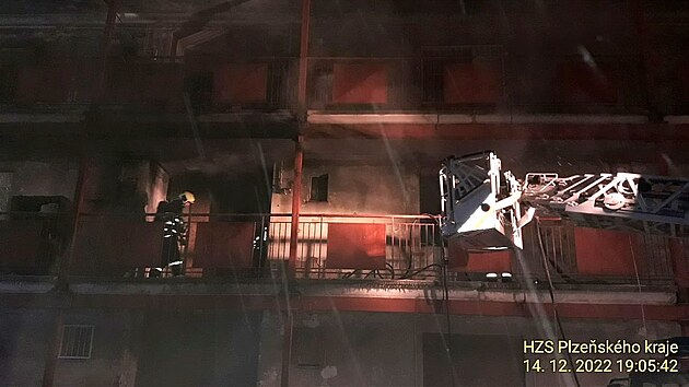 Požár pavlačového domu na Jateční třídě v Plzni zaměstnal několik hasičských jednotek.