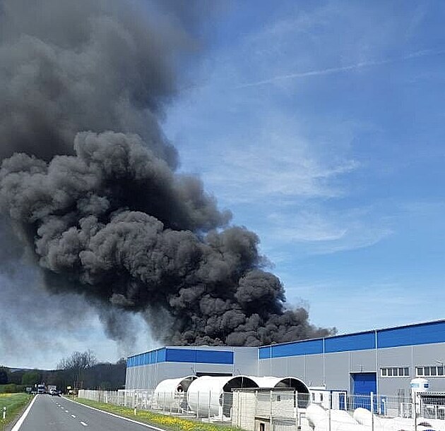 Požár ve výrobní firmě v Chodové Plané na Tachovsku. (28. dubna 2025)
