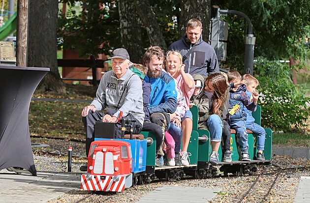 Nadšenci budují od roku 2022 v Břasích na Rokycansku zahradní železnici. Po kolejišti zatím jezdí zmenšená lokomotiva, jejímž vzorem byl skutečný stroj známý mezi železničáři jako Prasátko. (23. srpna 2025)