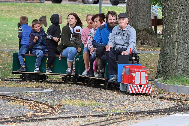 Nadšenci budují od roku 2022 v Břasích na Rokycansku zahradní železnici. Po kolejišti zatím jezdí zmenšená lokomotiva, jejímž vzorem byl skutečný stroj známý mezi železničáři jako Prasátko. (23. srpna 2025)