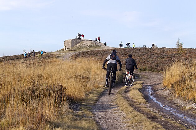 Podzim na Brdech, dopadová plocha Jordán, vrchol Houpák a bunkry přilákaly desítky turistů v době přísných protiepidemických opatření. (25. 10. 2022)