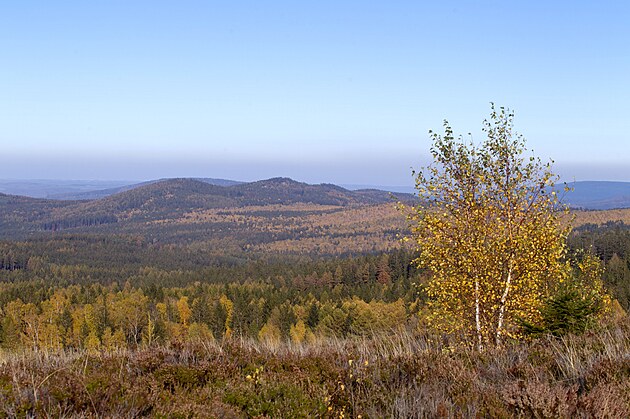 Podzim na Brdech, dopadová plocha Jordán, vrchol Houpák a bunkry přilákaly desítky turistů v době přísných protiepidemických opatření. (25. 10. 2022)