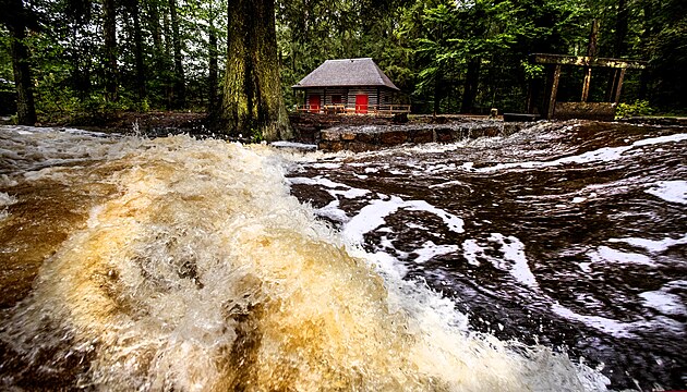 Tři Trubky v Brdech. Dům přírody Brd, návštěvnické středisko nejmladší chráněné krajinné oblasti v České republice, je kvůli vodě zavřené. Voda zaplavila naučné stezky i přilehlé turistické trasy. (14. září 2024)