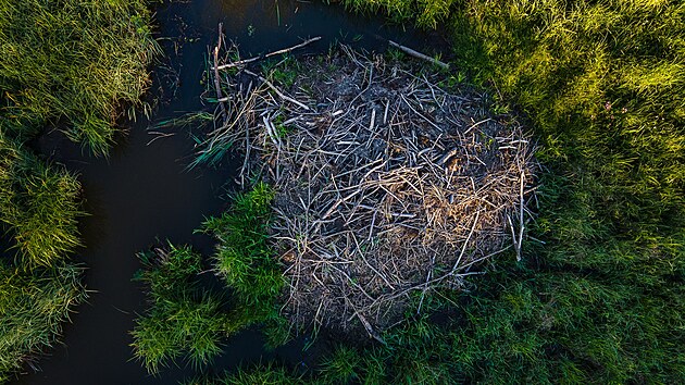 Mokřad vytvořený bobrem pod Dolejším Padrťským rybníkem v Chráněné krajinné oblasti Brdy
