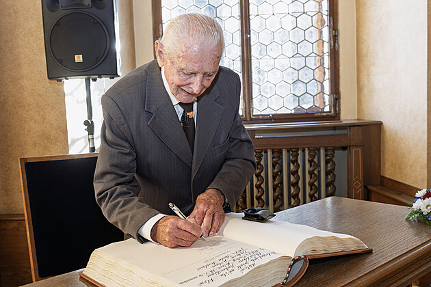 Historickou pečeť primátor Plzně Roman Zarzycký udělil výtvarníku advokátu, spisovateli a skladateli Karlu Pexidrovi. (28. října 2024)