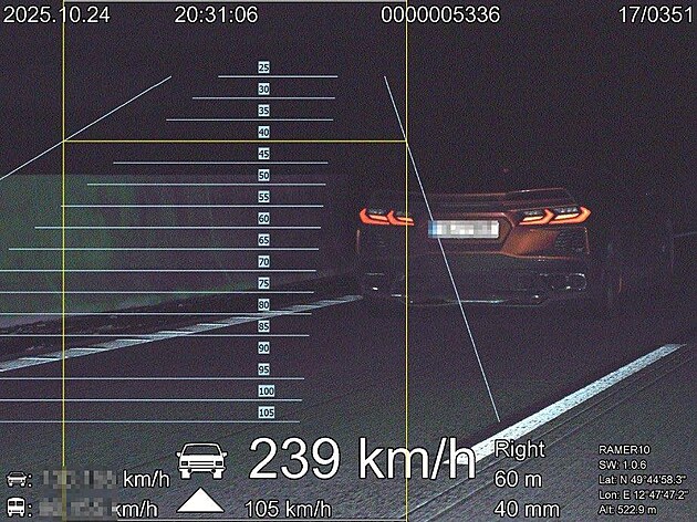 Policie na dálnici D5 zadržela muže, který se tmou řítil v rychlosti 239 kilometrů za hodinu. (24. října 2025)