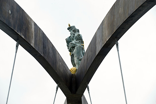 Autorem sochy sv. Jakuba je akademický sochař Jan Hendrych. (10. září 2025)
