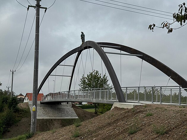 Autorem sochy sv. Jakuba je akademický sochař Jan Hendrych. (10. září 2025)