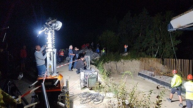 Usazování Faltusova mostu přes frekventovanou silnici z Plzně na Karlovy Vary u Chotíkova probíhalo v nočních hodinách. (21. září 2025)