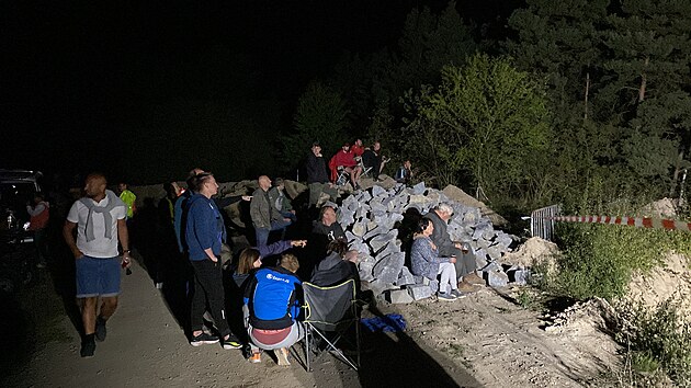 Osazování mostu přes frekventovanou silnici si nenechalo ujít asi šest desítek lidí. (22. září 2025)