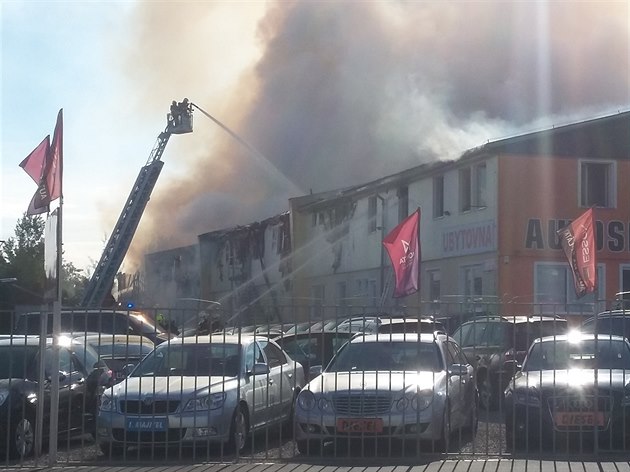 Plameny pohltily ubytovnu v Plzni na Karlově. (11. 8. 2018)