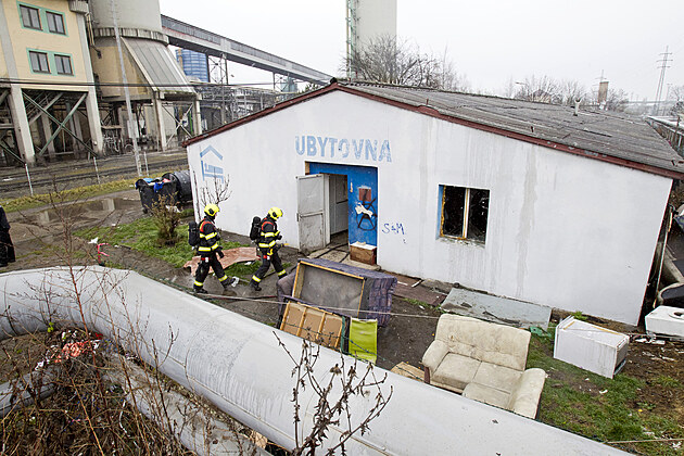 Požár ubytovny mezi Plzeňskou teplárenskou a seřazovacím nádražím v Plzni (1. dubna 2022)