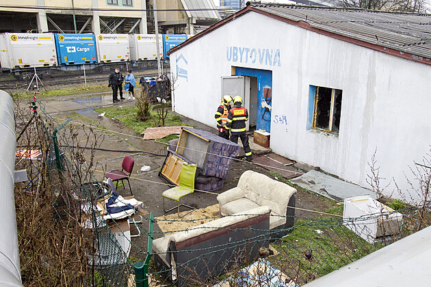 Požár ubytovny mezi Plzeňskou teplárenskou a seřazovacím nádražím v Plzni (1. dubna 2022)