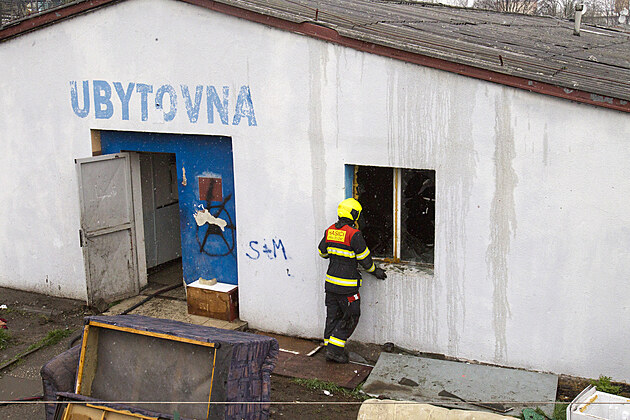 Požár ubytovny mezi Plzeňskou teplárenskou a seřazovacím nádražím v Plzni (1. dubna 2022)