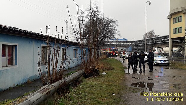 Požár ubytovny mezi Plzeňskou teplárenskou a seřazovacím nádražím v Plzni (1. dubna 2022)