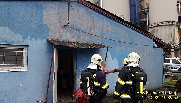 Požár ubytovny mezi Plzeňskou teplárenskou a seřazovacím nádražím v Plzni (1. dubna 2022)