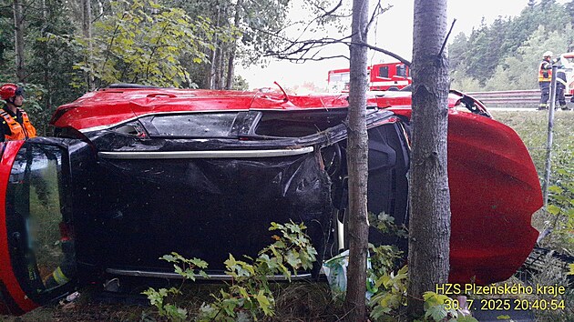 Druhá nehoda se stala o deset minut později o dva kilometry dál. Řidička dostala také smyk a skončila s autem na boku. Při této nehodě se lehce zranili dva lidé. (30. července 2025)