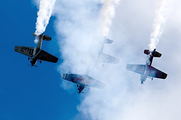 Den ve vzduchu se letos uskutečnil v Plasích na Plzeňsku již po jednadvacáté. Na snímku je strhující podívaná v podání Flying Bulls Aerobatics Teamu. (26. dubna 2025)