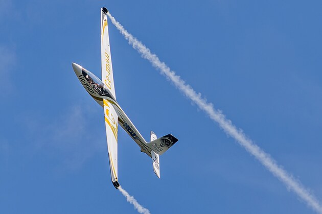 Den ve vzduchu si připsal dvě české premiéry. Jednou z bych bylo vystoupení italského pilota Luca Bertossia s kluzákem Swift S-1. (26. dubna 2025)