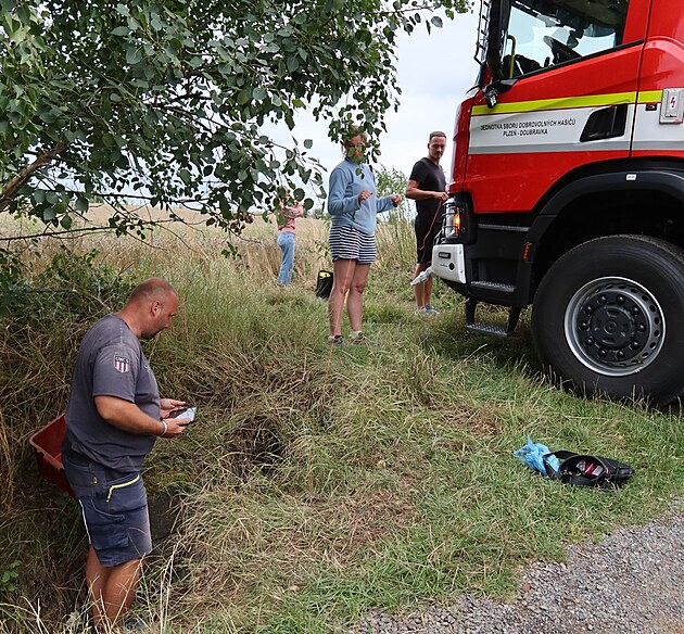 Velká akce na záchranu srnčete v Plzni, které vlezlo do meliorační šachty. Z úzké roury ho nakonec vysvobodily proudu vody. (28. července 2025)