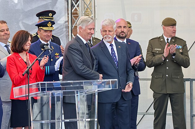 Pietní akt u památníku Díky, Ameriko! za účasti prezidenta Petra Pavla a krále Belgičanů Filipa. (6. května 2025)