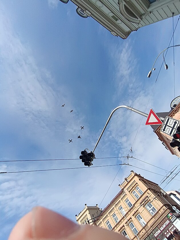 Nad památníkem proletěly letouny Armády České republiky JAS 39 Gripen a L 159 Alca. (6. května 2025)