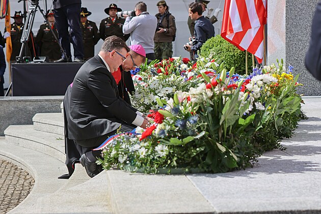 Pietní akt u památníku Díky, Ameriko! za účasti prezidenta Petra Pavla a krále Belgičanů Filipa. (6. května 2025)
