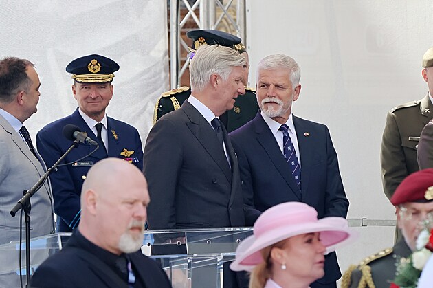 Pietní akt u památníku Díky, Ameriko! za účasti prezidenta Petra Pavla a krále Belgičanů Filipa. (6. května 2025)