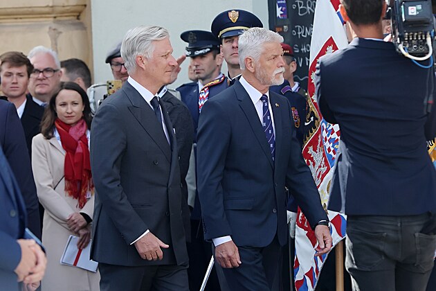 Pietní akt u památníku Díky, Ameriko! za účasti prezidenta Petra Pavla a krále Belgičanů Filipa. (6. května 2025)