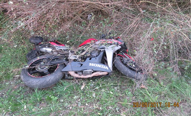 Dechová zkouška vyloučila u řidiče požití alkoholu před jízdou. Škodu na motocyklu policisté odhadli na padesát tisíc korun.