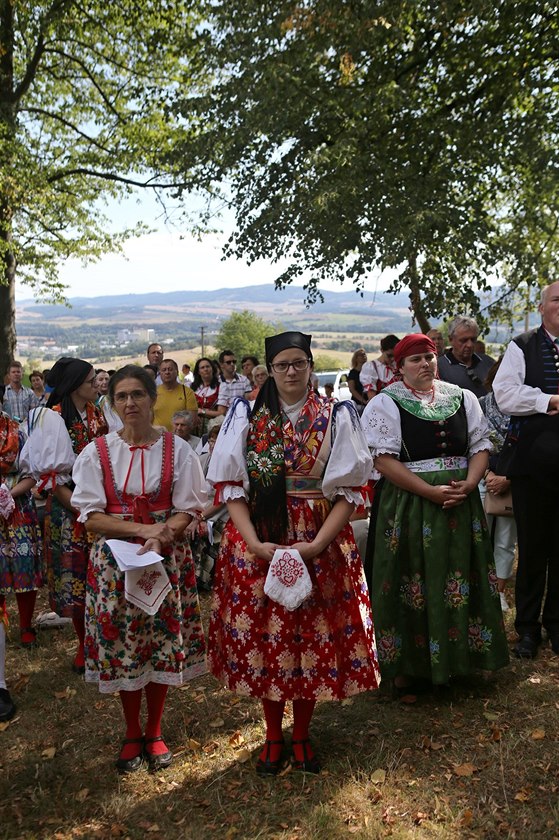 Poutní mši u kostela na vrchu Vavřineček, která je součástí Chodských slavností, celebroval kardinál Dominik Duka. Stovky lidí na ni přišly v krojích. (11. srpna 2018)