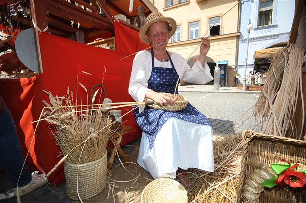 Chodské slavnosti v Domažlicích. Malování keramiky, tradiční řemeslná výroby, prodej chodských koláčů. (16. 8. 2015)