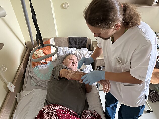 Jan Žatko již čtyři roky pomáhá pečovat o seniory v Domově Clementas v Janovicích nad Úhlavou na Klatovsku. Od letošního září povýšil do pozice praktické sestry.