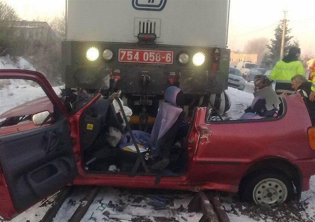 Po srážce auta s vlakem ve Vejprnicích zemřeli tři lidé (20. ledna 2017)