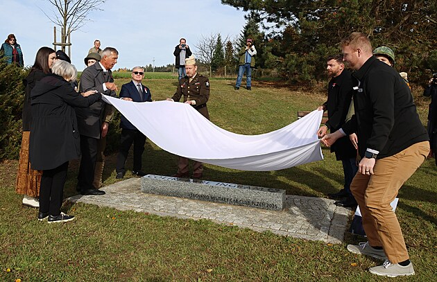 Památník v Kříších na Rokycansku byl odhalen veteránovi z druhé světové války Earlovi Ingramovi. (1. listopadu 2025)