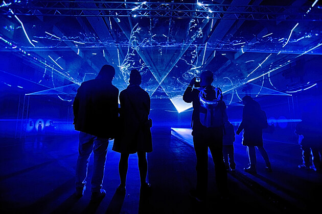 Instalace festivalu světla Blik Blik v centru Plzně. Akce se koná v pátek a v sobotu. (21. března 2024)