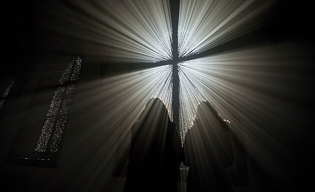 Světelné instalace japonského umělce Yasuhira Chidy pro letošní ročník festivalu světla Blik Blik v Plzni, v Muzeu církevního umění (19. března 2024)