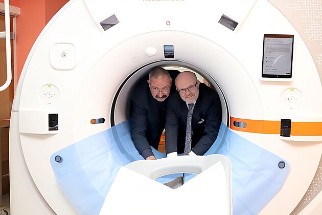 Na snímku je přednosta Kliniky zobrazovacích metod Fakultní nemocnice Plzeň Jiří Ferda s ministrem zdravotnictví Vlastimilem Válkem (vpravo). (16. ledna 2025)