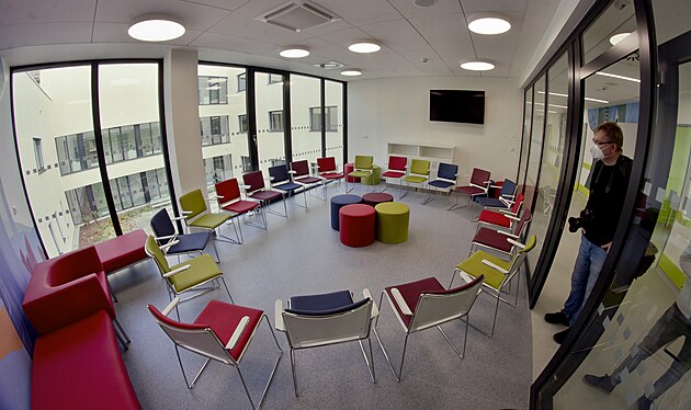 Nový pavilon Psychiatrické kliniky Fakultní nemocnice v Plzni na Lochotíně. Budova přišla na 457 milionů korun. (22. 2. 2022)