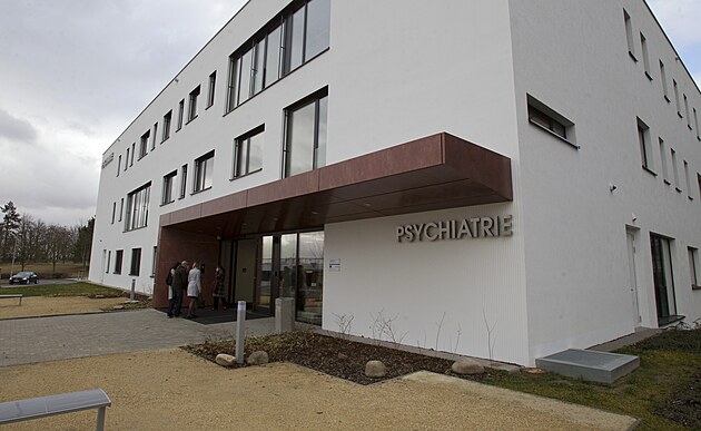 Nový pavilon Psychiatrické kliniky Fakultní nemocnice v Plzni na Lochotíně. Budova přišla na 457 milionů korun. (22. 2. 2022)