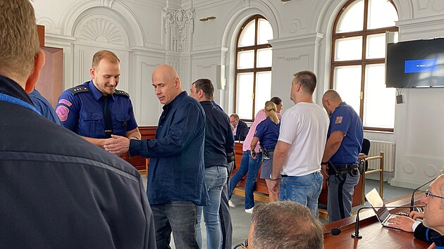 Nejpřísnější trest, 13 roků ve věznici, soudci Krajského soudu v Plzni vyměřili čtyřiačtyřicetileté Lence Hankové (na snímku v barevné košili). Podle názoru soudců byla hlavou drogového gangu, který čítal 13 mužů a žen. (18. června 2025)