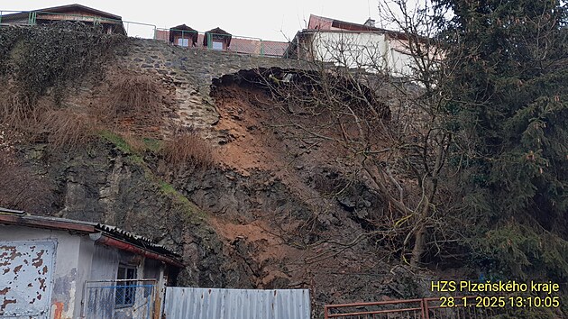 Ve Stříbře se sesula část hradební zdi.