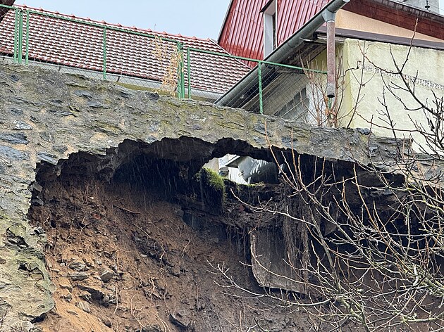 Ve Stříbře řeší havárii historické hradební zdi. Ta se v jednom místě sesunula.