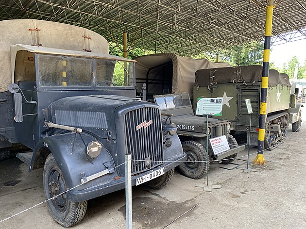 V rokycanském muzeu je k vidění válečná technika všech bojujících stran. Vedle německého nákladního auta tak stojí technika Američanů.