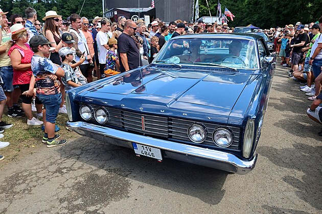 Na Pekelný ostrov u Holýšova na Klatovsku se sjely stovky historických i současných aut americké výroby s velkoobjemovými motory. (19. července 2025)