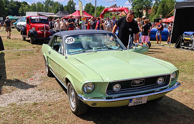 Na Pekelný ostrov u Holýšova na Klatovsku se sjely stovky historických i současných aut americké výroby s velkoobjemovými motory. (19. července 2025)