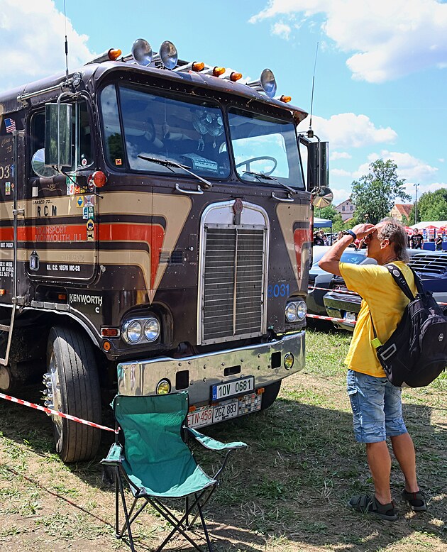 Na Pekelný ostrov u Holýšova na Klatovsku se sjely stovky historických i současných aut americké výroby s velkoobjemovými motory. (19. července 2025)